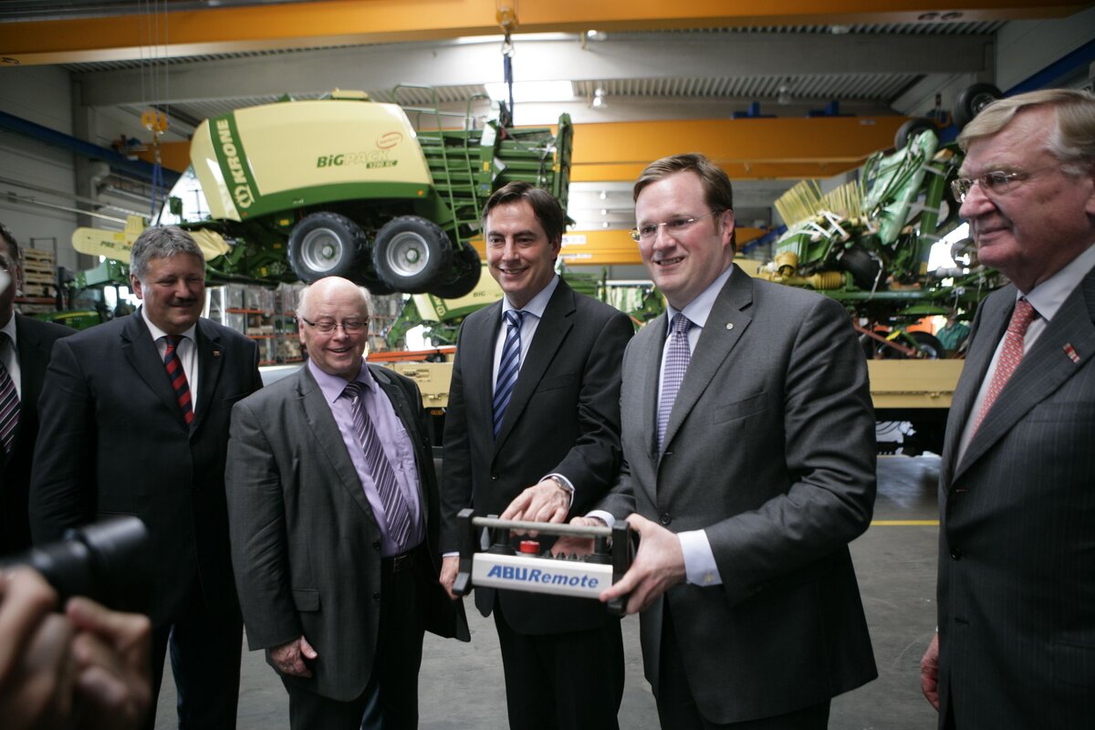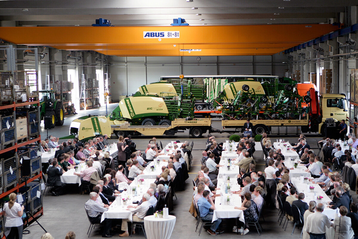 Innovative technology can only be used efficiently if the staff or the user is trained properly. The Krone group has made it a habit for many years to carry out trainings for their customers. When the new logistics centre was officially opened the foundation stone for the new Krone training centre was laid. Two ABUS single girder EOT cranes with a load capacity of 3.2 tonnes and a span of 15.400 mm will be installed in the 102 metres long reinforced concrete building. ABUS will also supply the crane runway required in parts of the building.