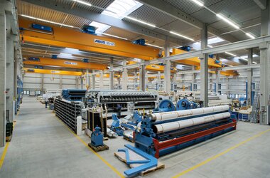 Puentes grúa ABUS en un fabricante de máquinas de corte y de desbobinar