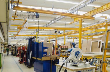 ABUS Puentes grúa y Sistemas HB en una fábrica de ventanas en Suiza