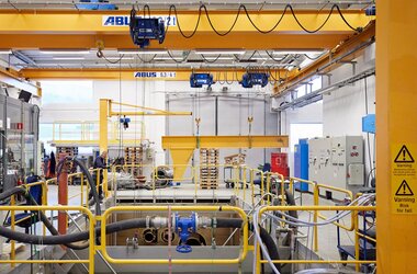 Puentes Grúa y Grúas Pluma ABUS para un fabricante sueco de bombas.
