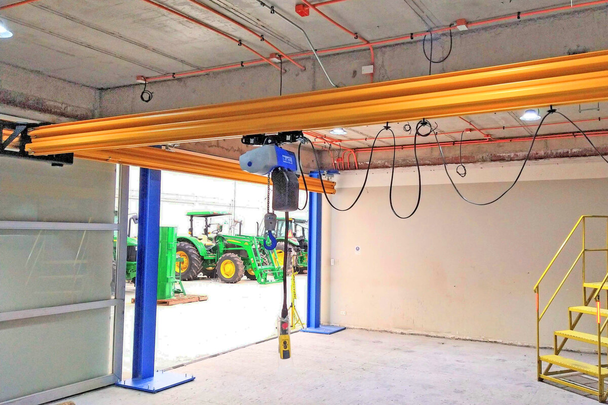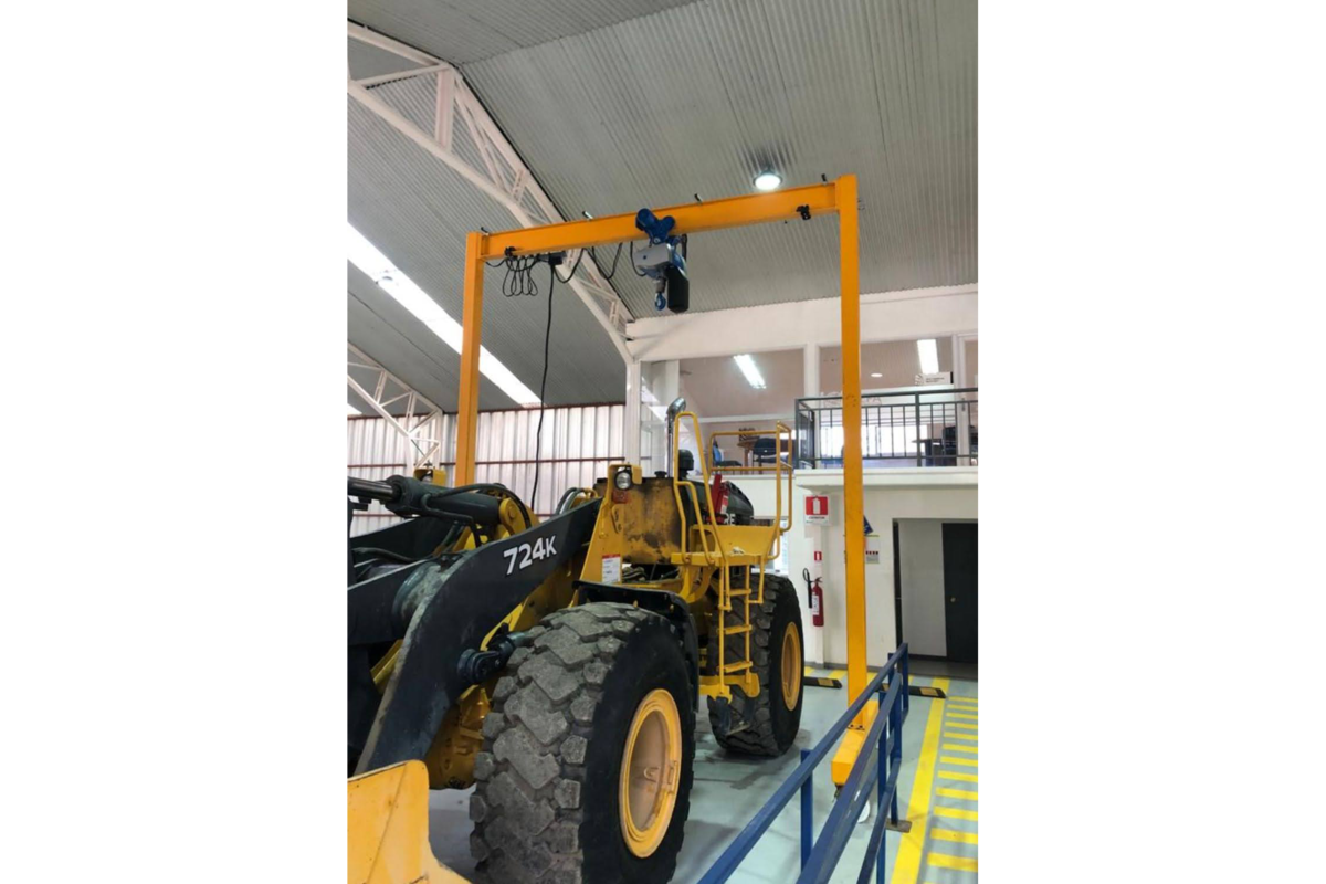Son varias las grúas aéreas eléctricas que se utilizan en SALFA desde 2016. JJ Crane también se encargó del asesoramiento, la venta, el montaje y la puesta en marcha de los equipos de otra base de servicio y mantenimiento. Una vez más, se instaló un puente grúa en la nave principal donde se realiza el mantenimiento de la maquinaria agrícola y los tractores. Este puente grúa monorail es de tipo ELK, con una envergadura de 16,5 metros y una capacidad de elevación de 3,2 toneladas. La grúa ELK se utiliza para elevar tractores y cuenta con un mando a distancia por radio ABURemote para que el operador pueda controlar la grúa y la carga en el gancho desde un lugar seguro.